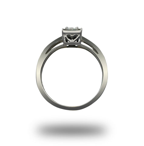 Oro 14K que abraza 0.33 quilates de diamantes en una danza de luz. Cada faceta captura el brillo con una precisión que solo la naturaleza y la maestría pueden lograr. Un anillo que no grita, sino susurra elegancia en tu dedo. Puro, directo, hermoso.
