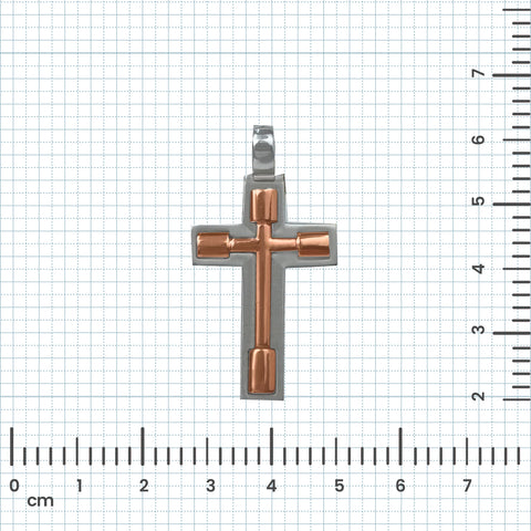 Un trabajo especial, cruz de oro 14k con una poderosa y única combinación de Oro rosado y blanco de 14k. Medidas 2.6 x 4.4 cm. Mod. 1DLIS0597-0723.